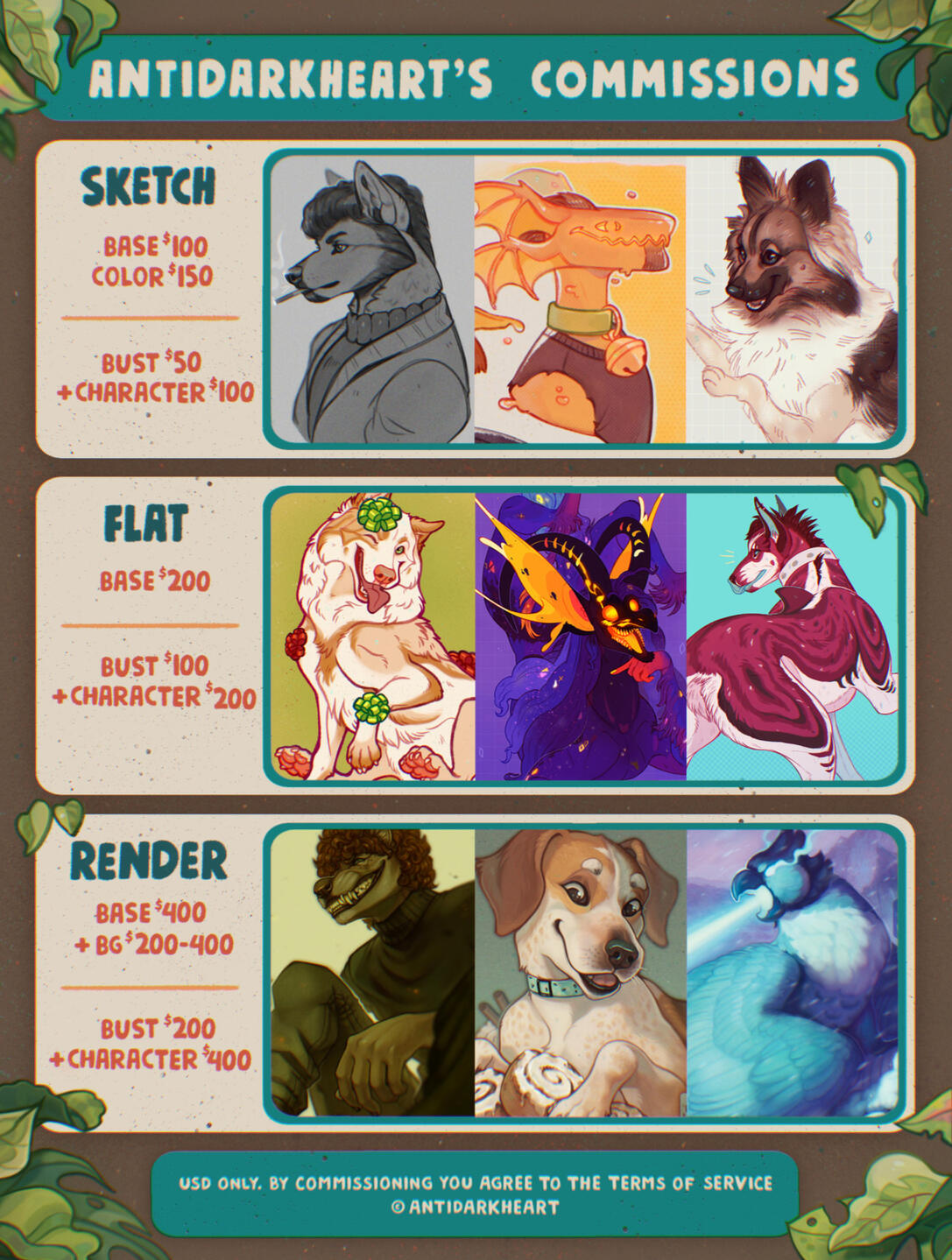 • I have the right to deny your commission.• I have the right to cancel your commission (refund given).• I do not accept full refunds after the approved sketch.• Minor changes may be requested. Major changes after an approved sketch may incur additional fees.• Overly complex characters may incur additional fees. No reference or poor reference may incur additional fees.• I own the rights to my artwork. You may not sell the artwork without my permission.• I have the right to ask for proof of your age to assure you’re at least 18.