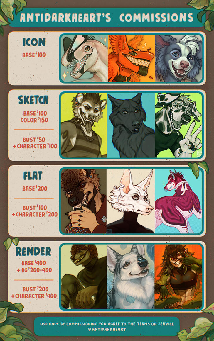 • I have the right to deny your commission.• I have the right to cancel your commission (refund given).• I do not accept full refunds after the approved sketch.• Minor changes may be requested. Major changes after an approved sketch may incur additional fees.• Overly complex characters may incur additional fees. No reference or poor reference may incur additional fees.• I own the rights to my artwork. You may not sell the artwork without my permission.• I have the right to ask for proof of your age to assure you’re at least 18.